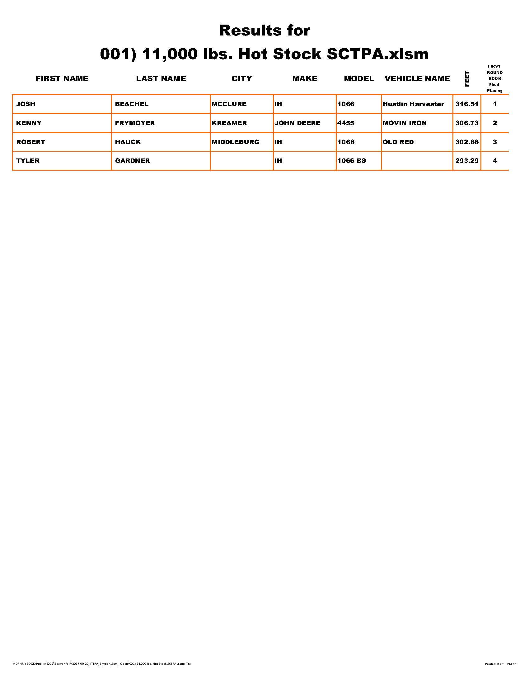 DUE TO MECHANICAL BREAKDOWN OF THE COMPETITION SLED ONLY ONE CLASS WAS COMPLETED ON FRIDAY EVENING.
