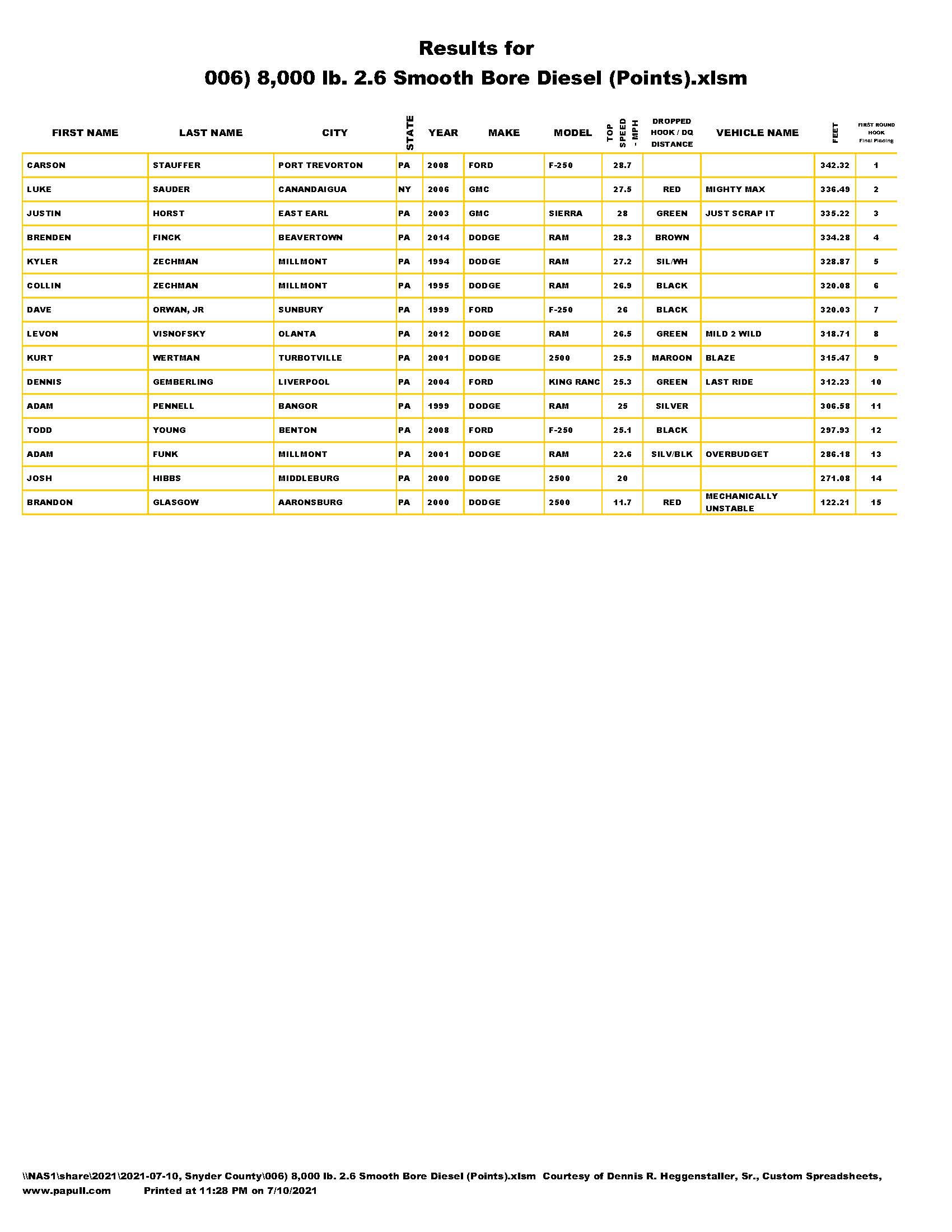 Snyder County Tractor Pullers 2021
