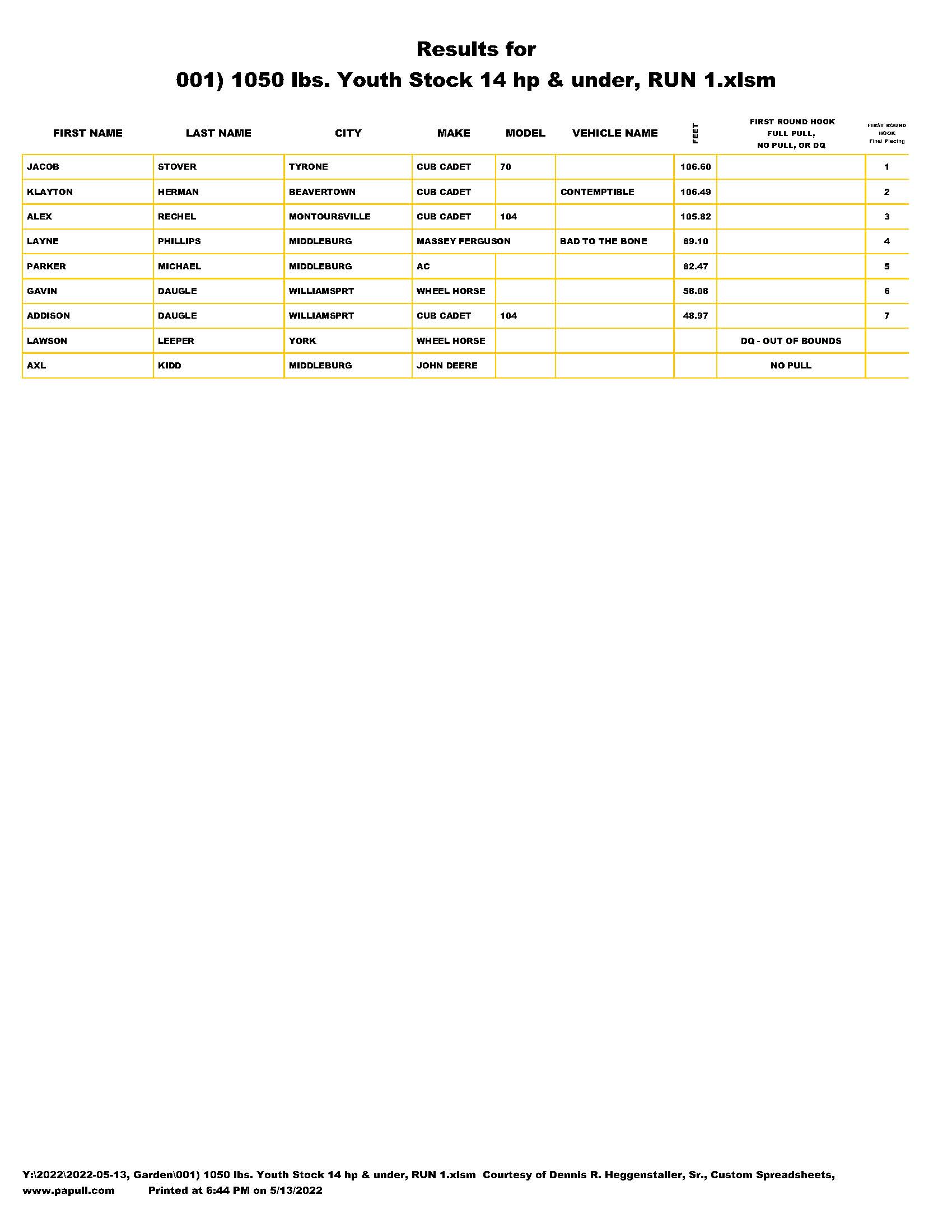 | 001) 1050 lbs. Youth Stock 14 hp & under, RUN 1.pdf |