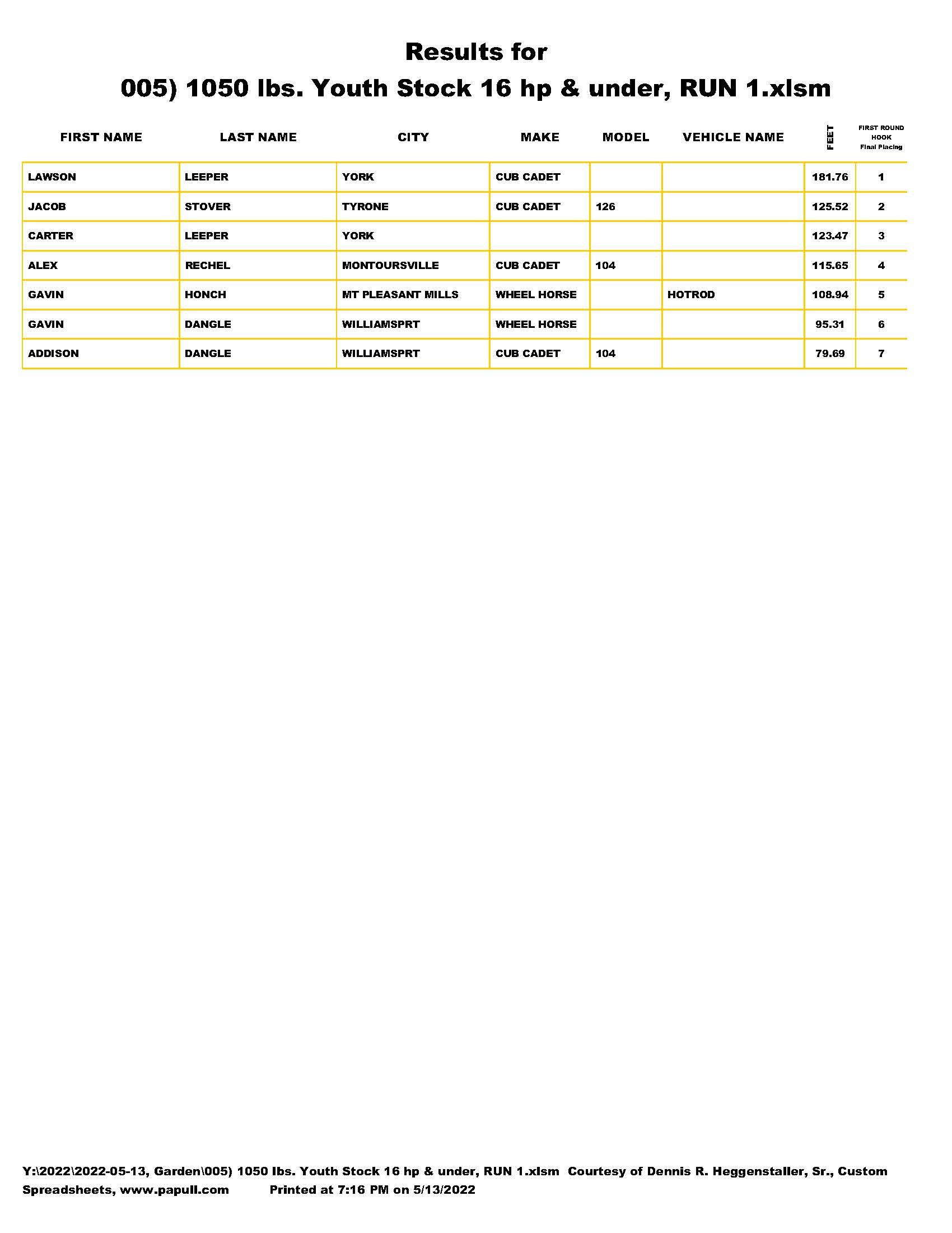 | 016) 1050 lbs. Youth Stock 16 hp & under, RUN 2.pdf |