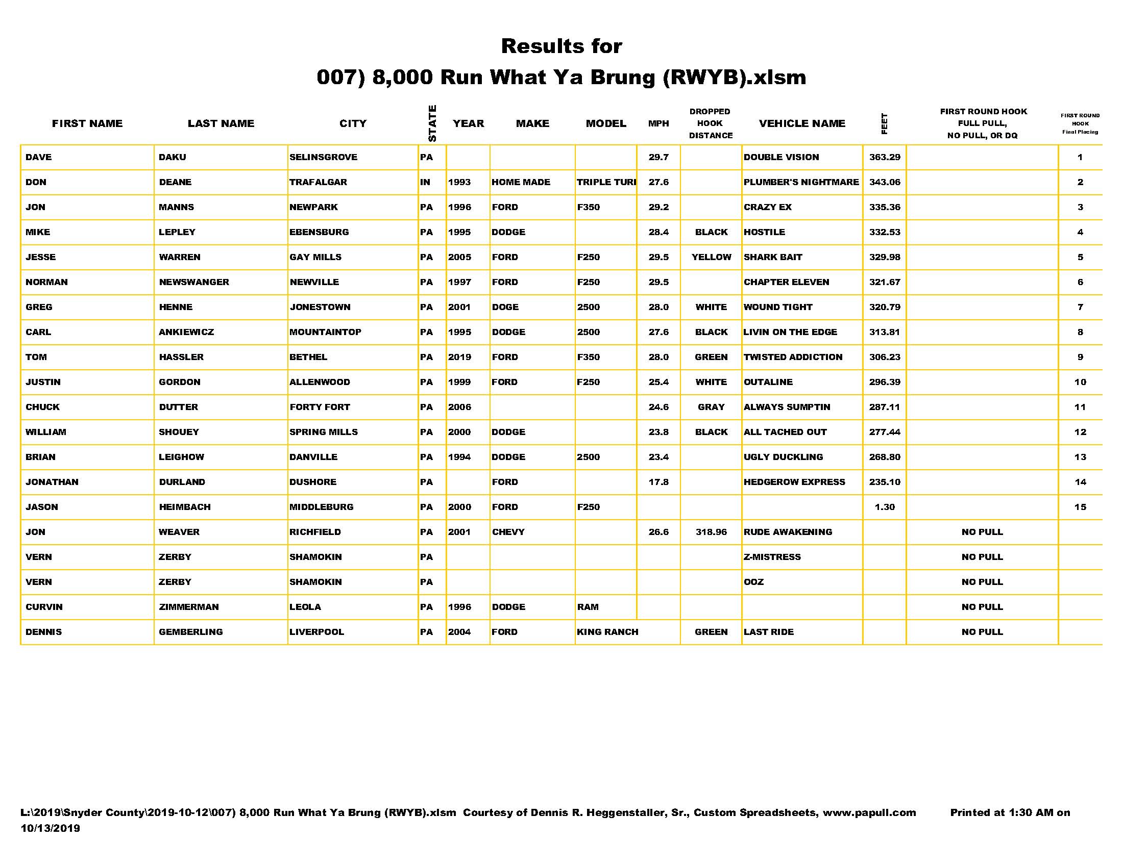 SNYDER COUNTY TRACTOR PULLERS